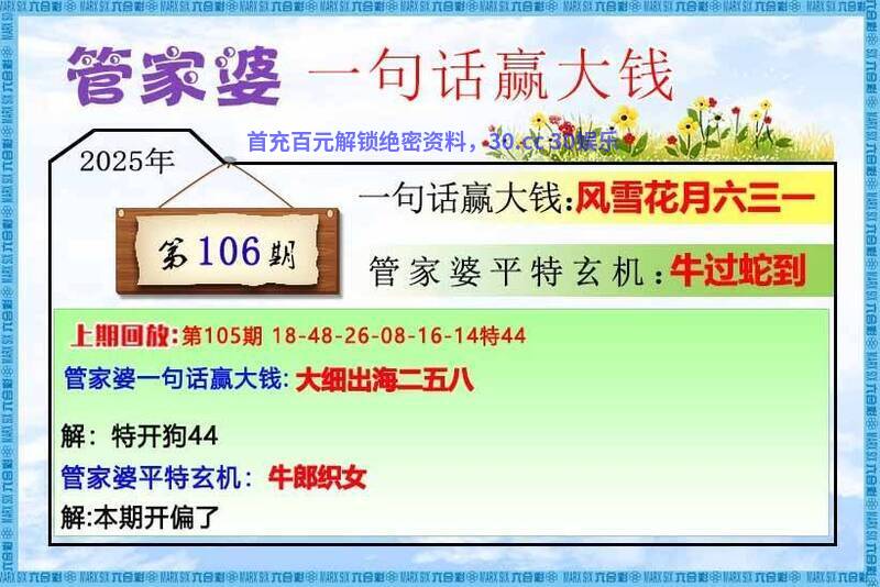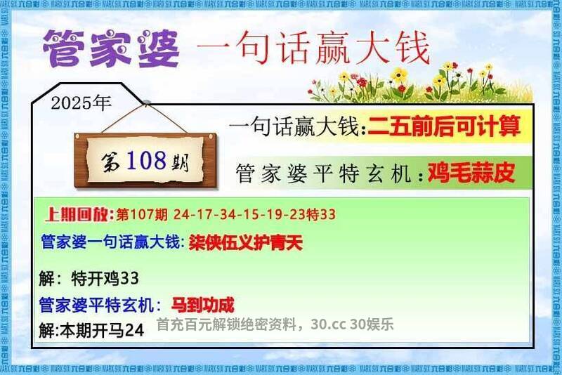 109期: 【财运亨通】【管家婆一句话赢大钱】财富永远都是给予那些善于抓住机遇的人!财富就是属于你的!